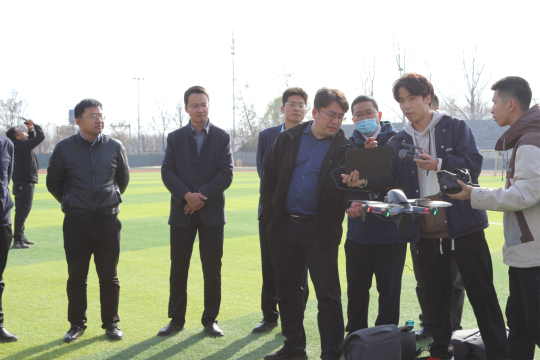 周国良处长一行认真听取了学院关于毕业生就业、劳动教育和创新创业教育的工作介绍,实地考察了无人机展厅和众创空间,并现场观摩无人机飞行演练和智能车展示。