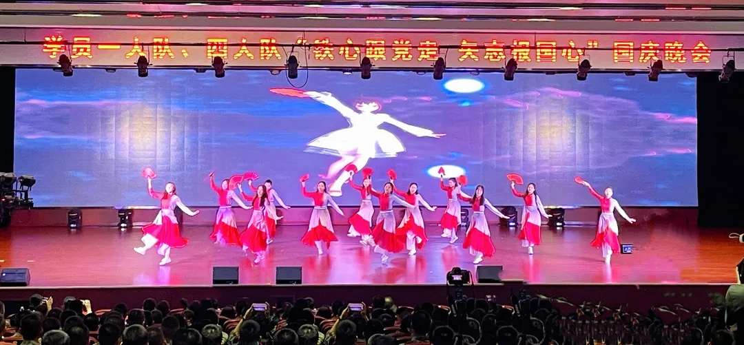 汇演中,beat365学子充分展现青年大学生的文艺风采。身着红白相间的舞蹈服,手执红色扇子。为绿色军营中展示出一抹中国红。