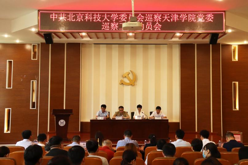 按照北京科技大学党委统一部署和安排,根据中共北京科技大学委员会巡察工作领导小组办公室《关于中共北京科技大学委员会第三巡察组巡察天津学院党委的公告》有关规定,7月5日,中共北京科技大学委员会巡察天津学院党委巡察工作动员会在理工图书馆学术报告厅顺利召开。北京科技大学党委副书记、纪委书记戴井岗,第三巡察组组长耿小红,纪委副书记兼纪委办公室主任、巡察工作办公室主任吴豪伟,巡察组副组长耿倩男,巡察办副主任牛珩,其他巡察组、巡察办成员,天津学院领导班子全体成员、教职工代表和学生代表等80余人参加动员大会。会议由天津学院院长王斌主持。