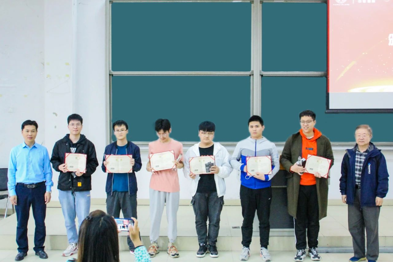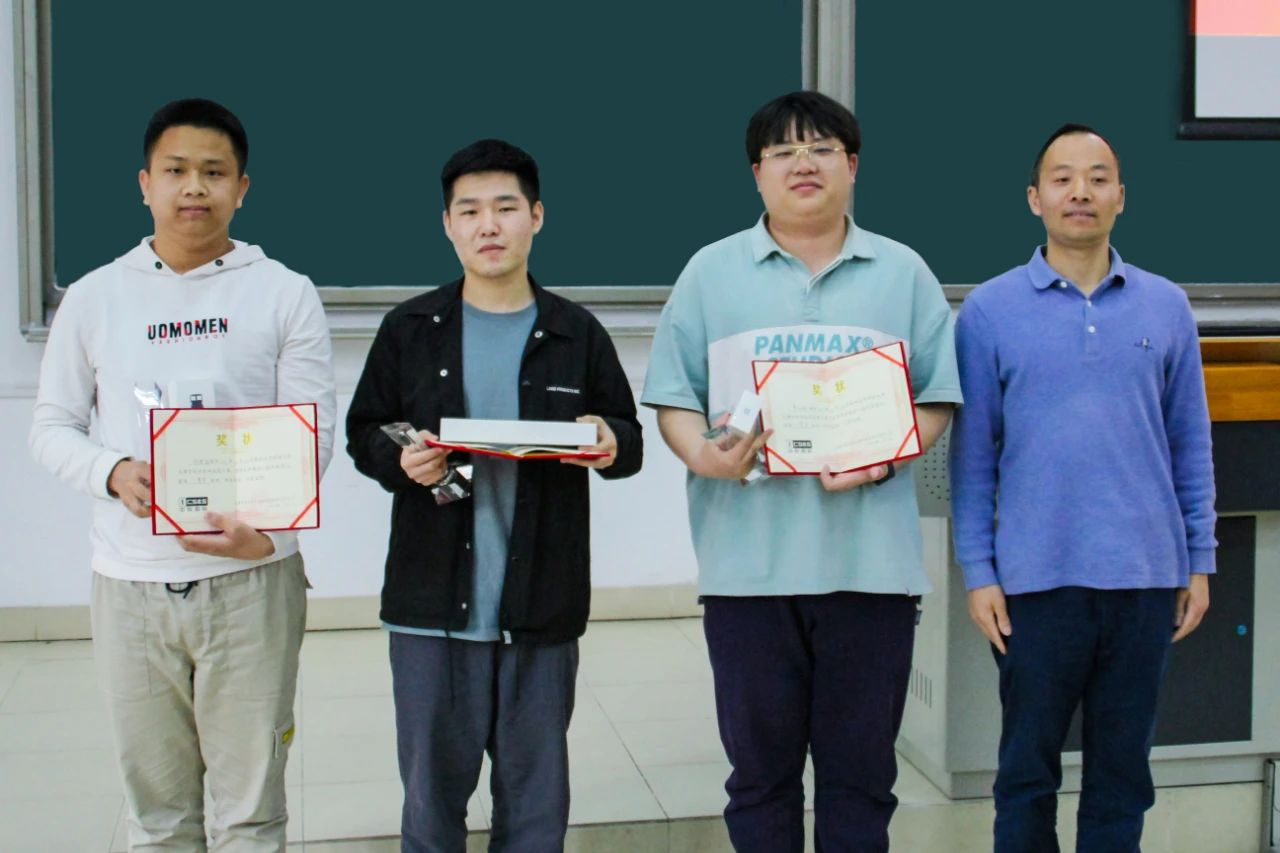 教务处处长舒敬荣为一等奖获奖者颁发证书以及奖品。