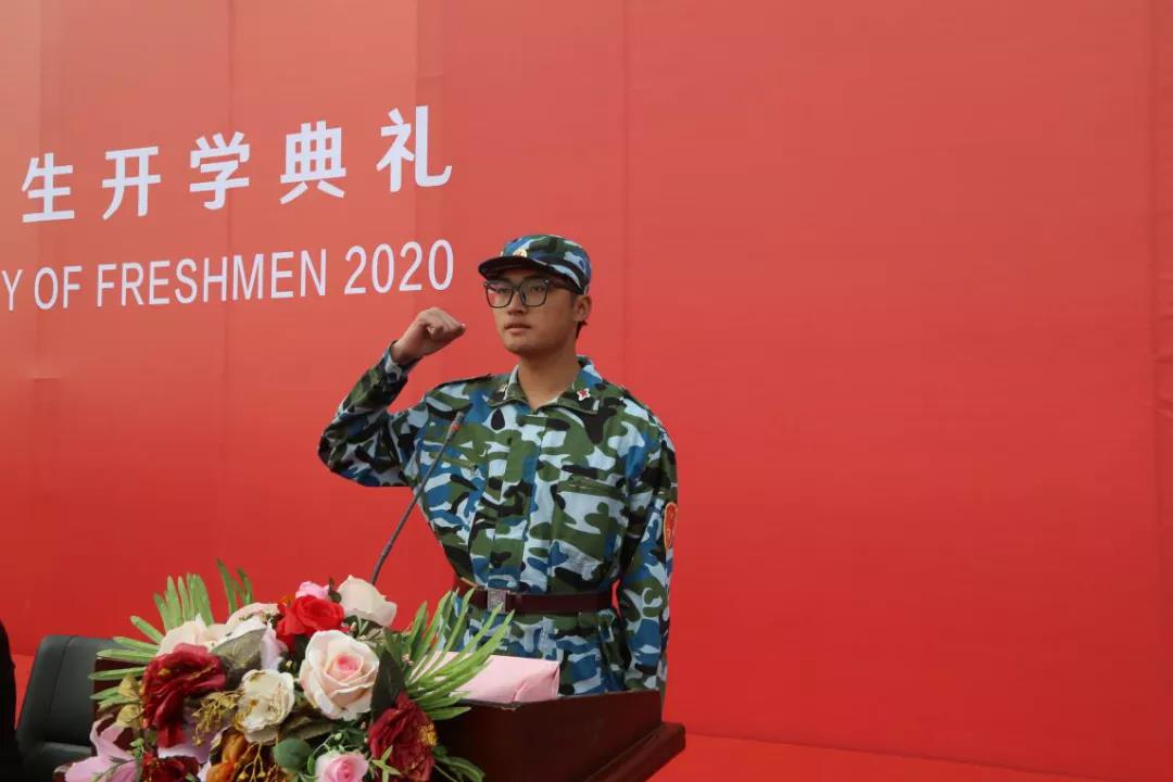 张芮铜同学带领新生庄严宣誓,全体新生情绪饱满、声音响亮,展现了良好的精神风貌。