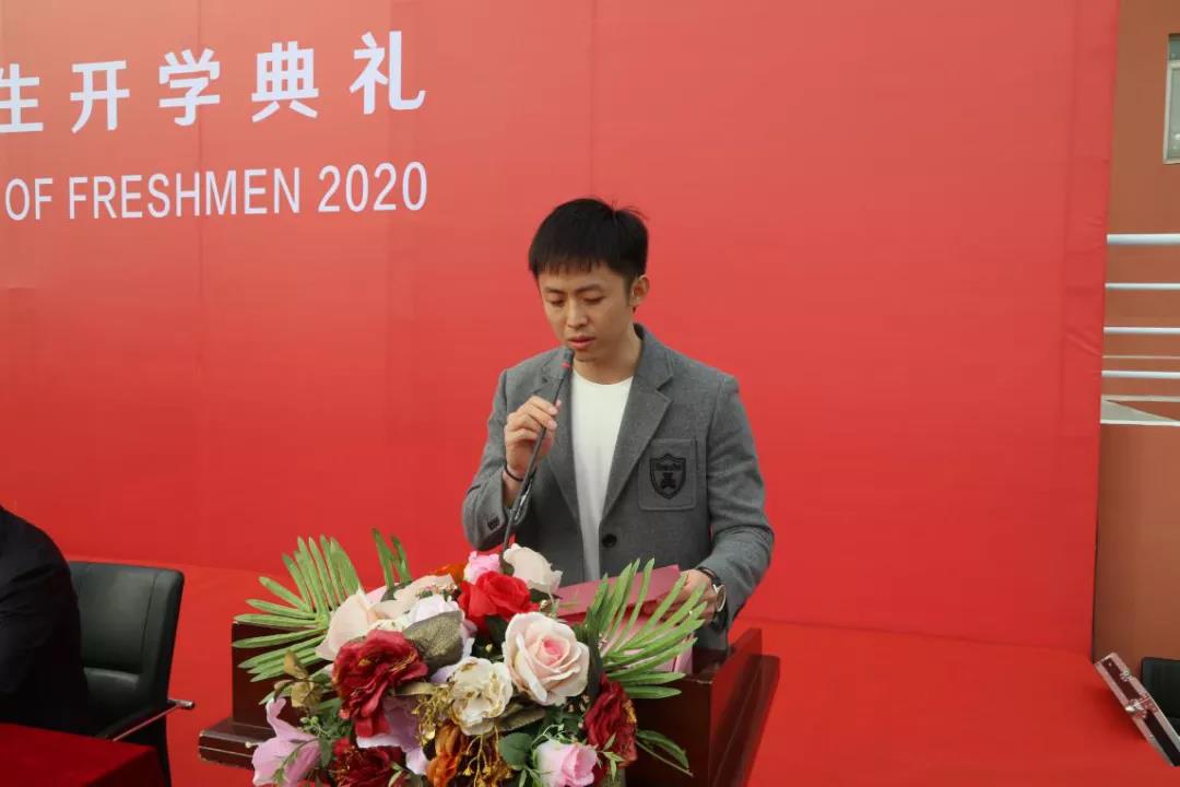院长王斌在开学典礼上致辞。王院长代表学院全体师生员工向2020级新生表示衷心的祝贺和热烈的欢迎。他寄语同学们要牢记使命,肩负担当;崇尚知识,积极进取;毕力躬行,知行合一。希望同学们心中有理想,脚下有力量,始终与时代同向,与祖国同行,放飞青春梦想,书写追梦人生!