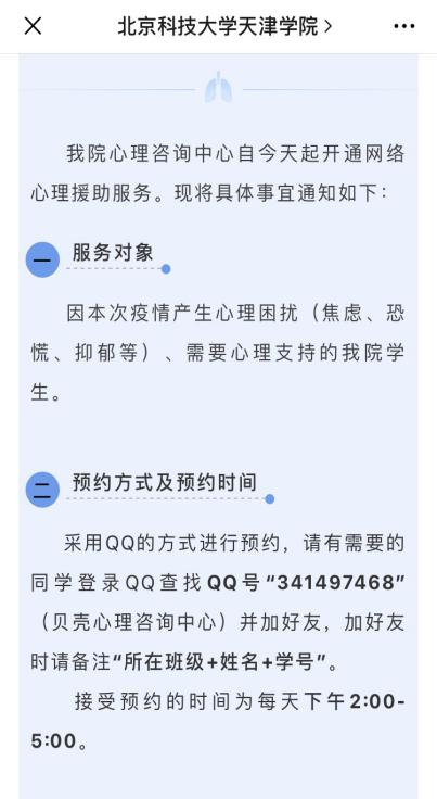 六是开展专项服务,保障师生安全。针对本次疫情师生可能产生的焦虑、恐慌、抑郁等心理困扰,学院心理咨询中心开通网络心理援助服务,利用网络渠道,为全院师生提供一对一线上心理咨询服务,确保做好师生的心理疏导工作;针对大四学生急于外出实习或面试的情况,学院组织辅导员积极开展警示教育和纪律教育,劝导学生不要外出,并与实习单位积极沟通,说明学院防控工作相关要求。就业指导中心利用网络发布招聘信息,在线上做好相关的就业指导和服务,同时发起《给用人单位的一封信》,号召用人单位实行网上面试,网上签约,网上报到;针对全体学生,落实“停课不停学、学习不延期”要求,积极开展假期各项学习活动,搜集网络学习资源,推荐假期阅读书单,引导学生养成良好学习习惯,合理规划在家学习生活。
