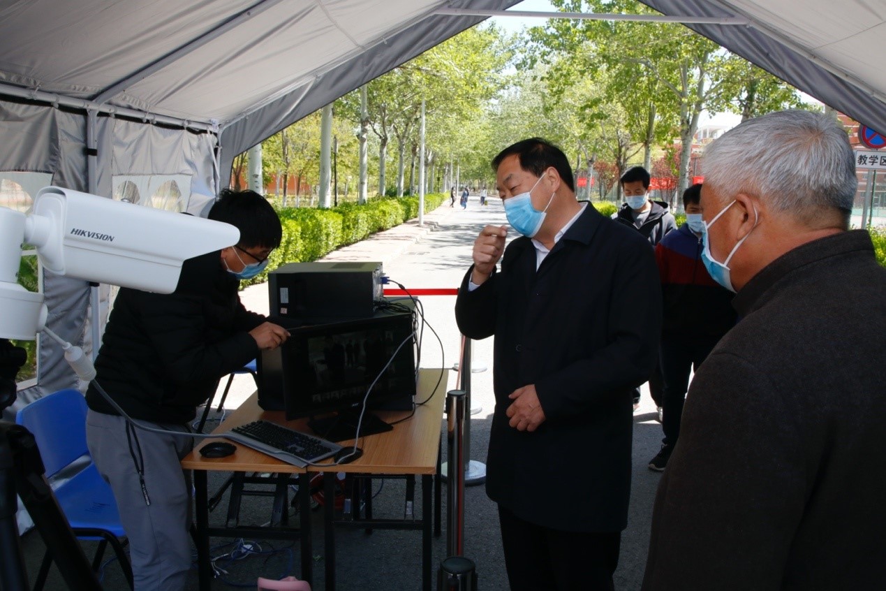 市教委检查组分四组对照《天津市高等学校2020年春季学期复课开学条件核验细则》逐一核查落实,实地查看学院临时隔离观察点、医疗保障和卫生达标以及教室、食堂、宿舍等重点区域疫情防控措施落实情况,观看宿舍学生发热应急处置和食堂送餐、分餐等模拟演练,并对进一步做好复课开学疫情防控工作提出具体要求。