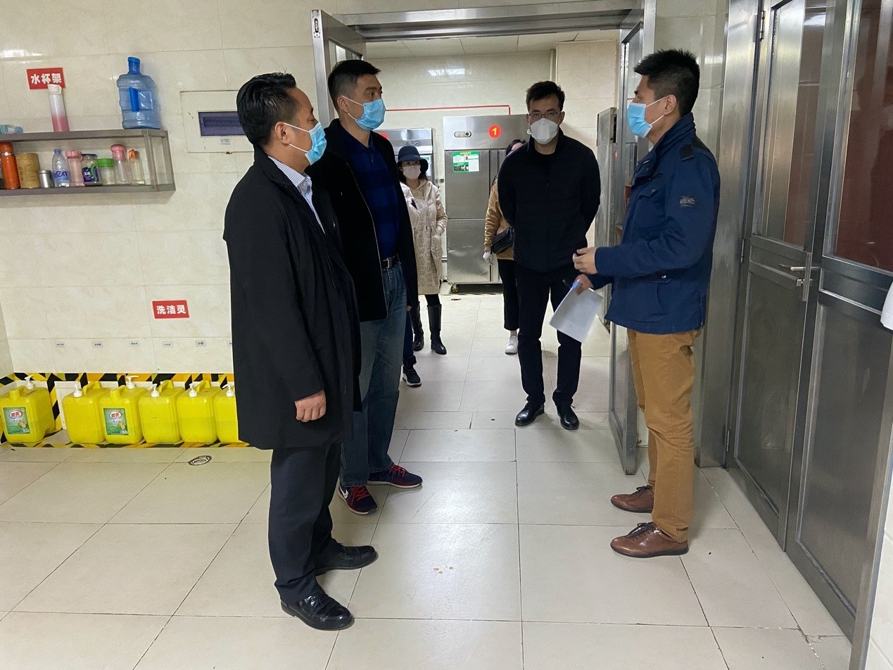 4月23日上午,市教委学生处杨明,市卫生健康委王健鹏,市市场监管委李卿,市教委学生处何飞一行到beat365进行复课开学条件核验,宝坻区教育局党委书记、局长周振亮,副局长刘淑玲陪同检查和指导工作。学院院长王斌,副院长张永锋、叶振楠,财务总监王俊敏,相关部门负责同志陪同检查。
