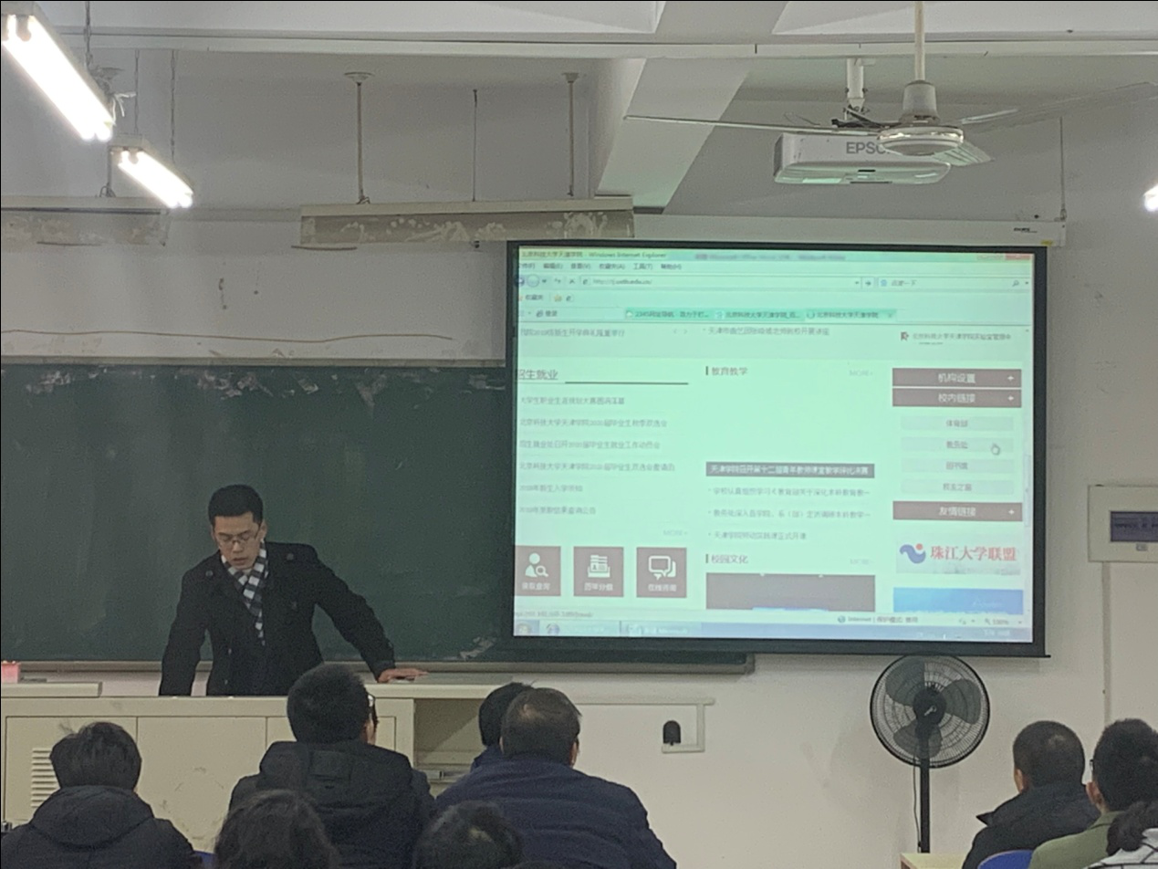 教务处张钊老师介绍了教务系统的使用说明和操作方法,并通过使用多媒体演示,在演示中列举了一些新教师在使用系统时可能会遇到的问题及应对办法。通过培训解决了各位教师在使用教务系统遇到的困难,为以后的教学工作提供了便利。