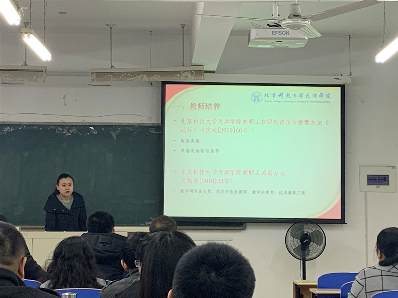 11月20日,全体新入职教师在8教107参加了学院规章制度培训会。