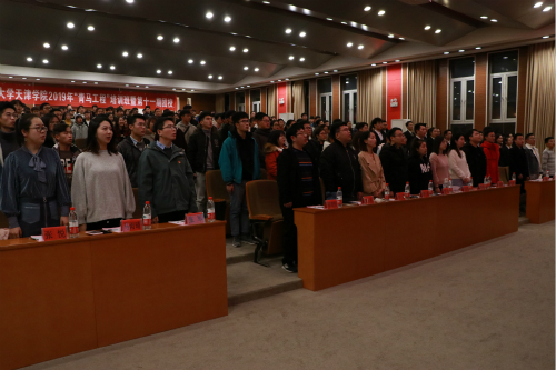 2019年11月28日晚上19时,英国beat365官方网站2019年"青马工程"培训班暨第十一期团校结业典礼在理工馆学术报告厅隆重举行。团委副书记李洋、何欢欢、李光,团校各班级班主任及全体团校学员共300余人参加结业典礼。