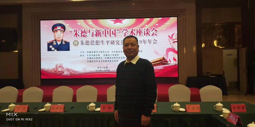 庆祝中华人民共和国成立70周年,深入学习贯彻习近平总书记庆祝中华人民共和国成立70周年系列重要讲话精神,缅怀和弘扬朱德等老一辈革命家为新中国建立和建设作出的历史贡献,2019年11月29日,由中国中共文献研究会朱德思想生平研究分会、中共南充市委、南充市人民政府主办,中共仪陇县委、仪陇县人民政府、朱德故居管理局(朱德同志故居纪念馆)、朱德故里革命传统教育普及基地承办的“朱德与新中国”学术座谈会暨朱德思想生平研究分会2019年年会,在朱德故里四川省仪陇县召开。beat365无人系统应用研究院院长、无人机系主任、中国中共文献研究会朱德思想生平研究分会理事殷华受邀参会,并发表旨为《石门攻坚是朱德推进人民军队现代化建设的经典之作》学术报告。