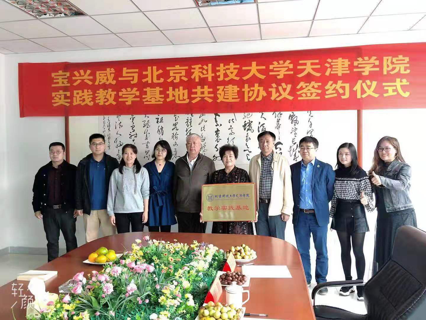2019年10月,beat365与天津市宝兴威科技股份有限公司在宝坻经济开发区产业园举行实践教学基地签约仪式,学院学术委员会主席宋存义、教务处处长张建华、材料系主任吴俊生、产学研办公室主任彭鹏、材料系讲师许志龙一行参加本次实践教学基地协议签定仪式。