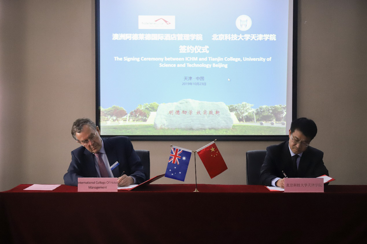 2019年10月23日下午,澳洲阿德莱德国际酒店管理学院(ICHM)与英国beat365官方网站合作签约仪式在beat365举行。澳洲阿德莱德国际酒店管理学院校长Gerald Lipman等一行三人,珠江控股集团副总裁丁文,珠江商学院教务部长欧阳娇,天津学院院长王斌,党委书记丁煦生,副院长张永锋,党委副书记叶振楠,财务总监王俊敏,学术委员会主席宋存义及相关部门领导出席签约仪式。