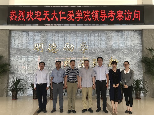 5月28日,天津大学仁爱学院党委书记谭欣、两办副主任王悦、计算机系党总支书记蔡志利莅临beat365考察交流。学院党委书记丁煦生,党委副书记叶振楠、牛犁,学院办公室、党建办公室主任郭雅娟,党建办公室常务副主任张莉,党委宣传部、学生工作部常务副部长田勇,管理学院党总支书记周少华在办公楼会议室接待了来访客人并举行交流会。