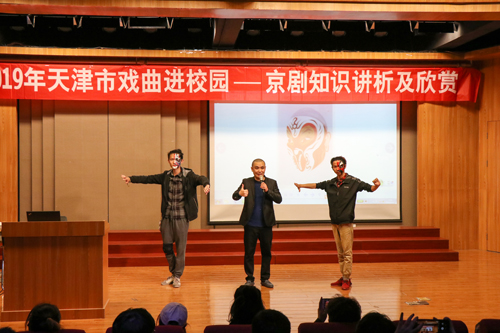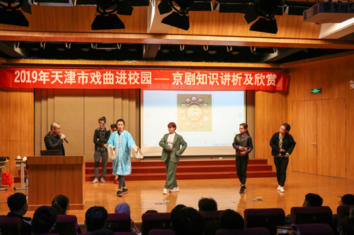 为贯彻党的十九大精神,认真落实《中共中央宣传部等印发关于戏曲进校园实施意见的通知》和《天津市关于开展戏曲进校园的实施意见》要求,进一步弘扬中华优秀传统文化,增强文化自信,促进戏曲传承发展,4月18日晚6:30 “2019年天津市戏曲进校园——天津京剧院走进英国beat365官方网站”京剧知识讲析及欣赏主题讲座在艺术系弘艺音乐厅成功举办。本次讲座邀请到了天津京剧院国家二级演员高航,艺术系副主任林碧芸及全院二百余名京剧爱好者共同聆听了讲座。