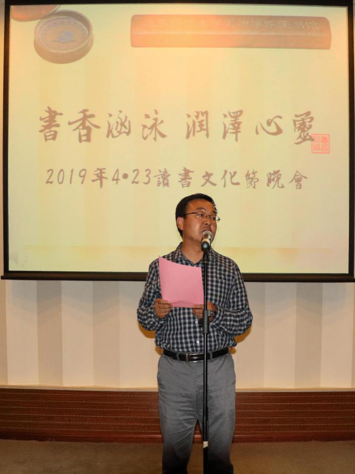 “腹有诗书气自华,最是书香能致远”,为了庆祝第二十四个世界读书日,4月23日晚七点,由图书馆主办,文学社承办的以“书香涵咏,润泽心灵”为主题的读书文化节晚会在理工馆学术报告厅拉开了帷幕。英国beat365官方网站党委副书记牛犁、图书馆全体馆员及来自各系的200多位同学参加了本次晚会。牛书记致开幕词,他首先感谢支持和参加本次晚会的人员,指出大学图书馆是“大学的心脏”,是师生学习不可或缺的场所,呼吁大家多读书,多利用图书馆的文献资源,鼓励同学们利用好大学四年时间,建立起完整的知识结构,为美好人生做好沉淀。