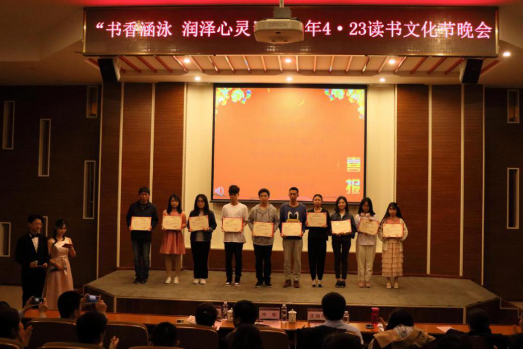 晚会穿插了颁奖环节,表彰了本学年度在阅读推广活动中的优秀个人和团体。接近尾声时,图书馆馆长刘淑娥做了总结发言,倡导同学们趁着青春年华,多阅读,感受书香魅力,尽享读书之乐,晚会在掌声中结束了。