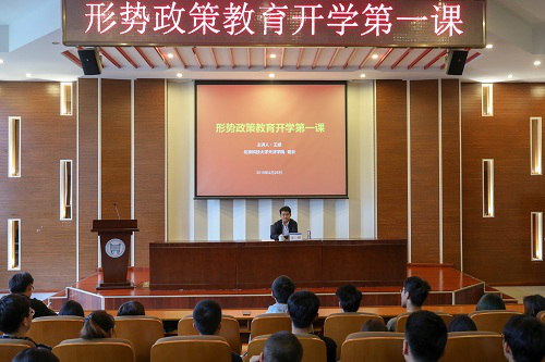 为深入贯彻学习党的十九大精神和习近平新时代中国特色社会主义思想,4月28日下午,beat365院长王斌为学生讲授形势政策教育开学第一课,300余名学生党员和干部聆听了讲课。