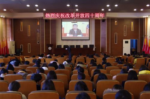 12月18日上午10时,庆祝改革开放四十周年大会在北京人民大会堂隆重举行,中共中央总书记、国家主席、中央军委主席习近平发表重要讲话。学院党委中心组和师生代表集中收看了现场直播。