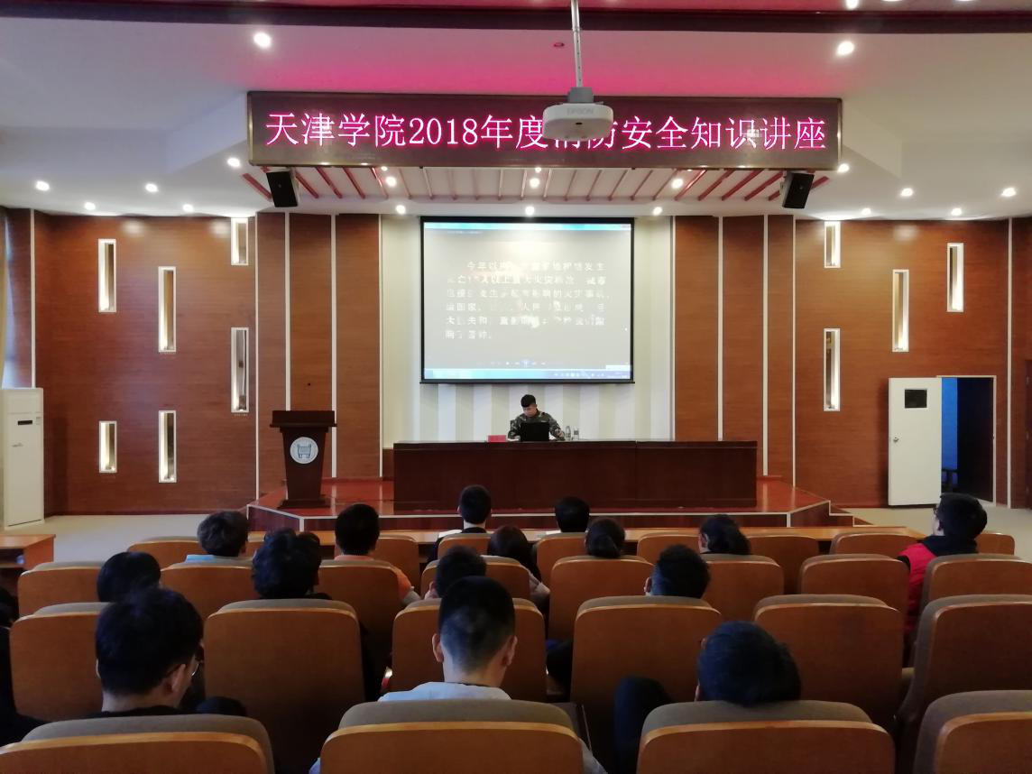 按照学院保卫处2018年“119”消防安全宣传月系列宣传活动工作计划,为普及消防安全常识,切实提高全院师生员工的消防安全意识,学院保卫处组织策划了2018年“119”消防安全宣传月系列活动。11月21日下午,天津学院2018年度消防安全知识讲座在理工图书馆报告厅圆满举行。beat365大一至大三学生代表共200余人参加了此次安全知识讲座,讲座特邀请了宝坻消防支队九园中队张天宇中队长主讲。