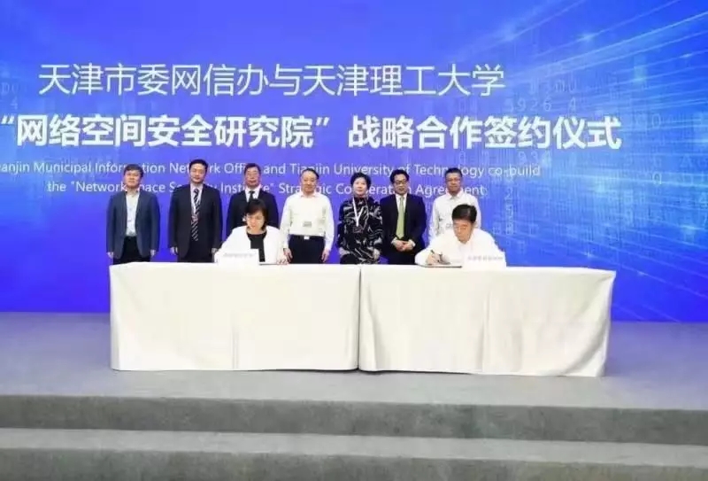 2018年5月16日下午,第二届世界智能大会“智能科技与网络安全”专题论坛在天津梅江会展中心召开。论坛上,天津市委网信办和天津理工大学签订共建“天津市网络空间安全研究院”战略合作框架协议。